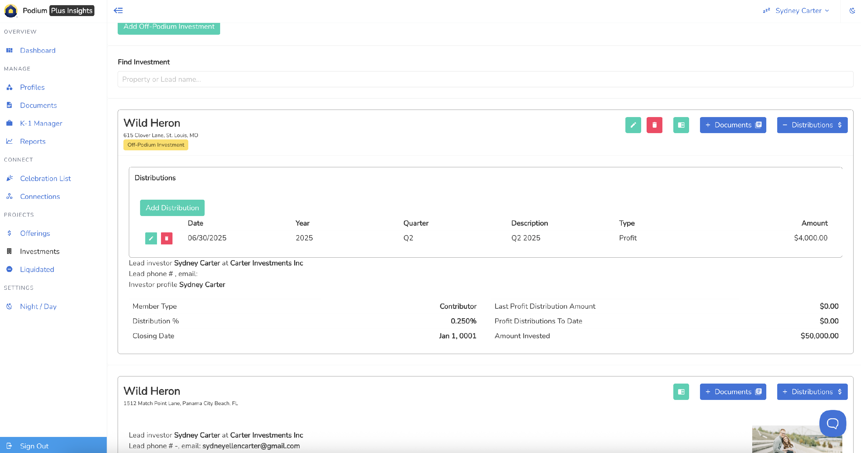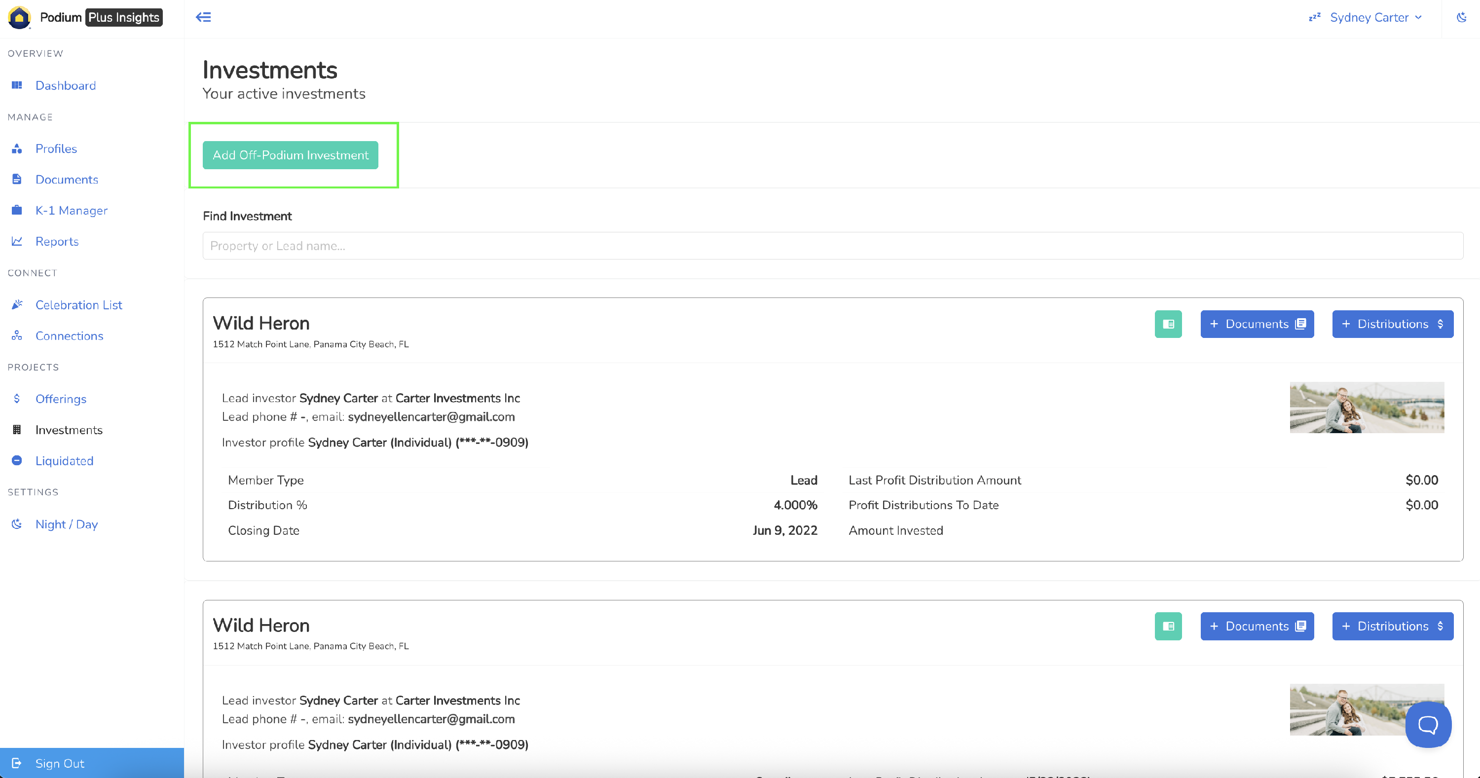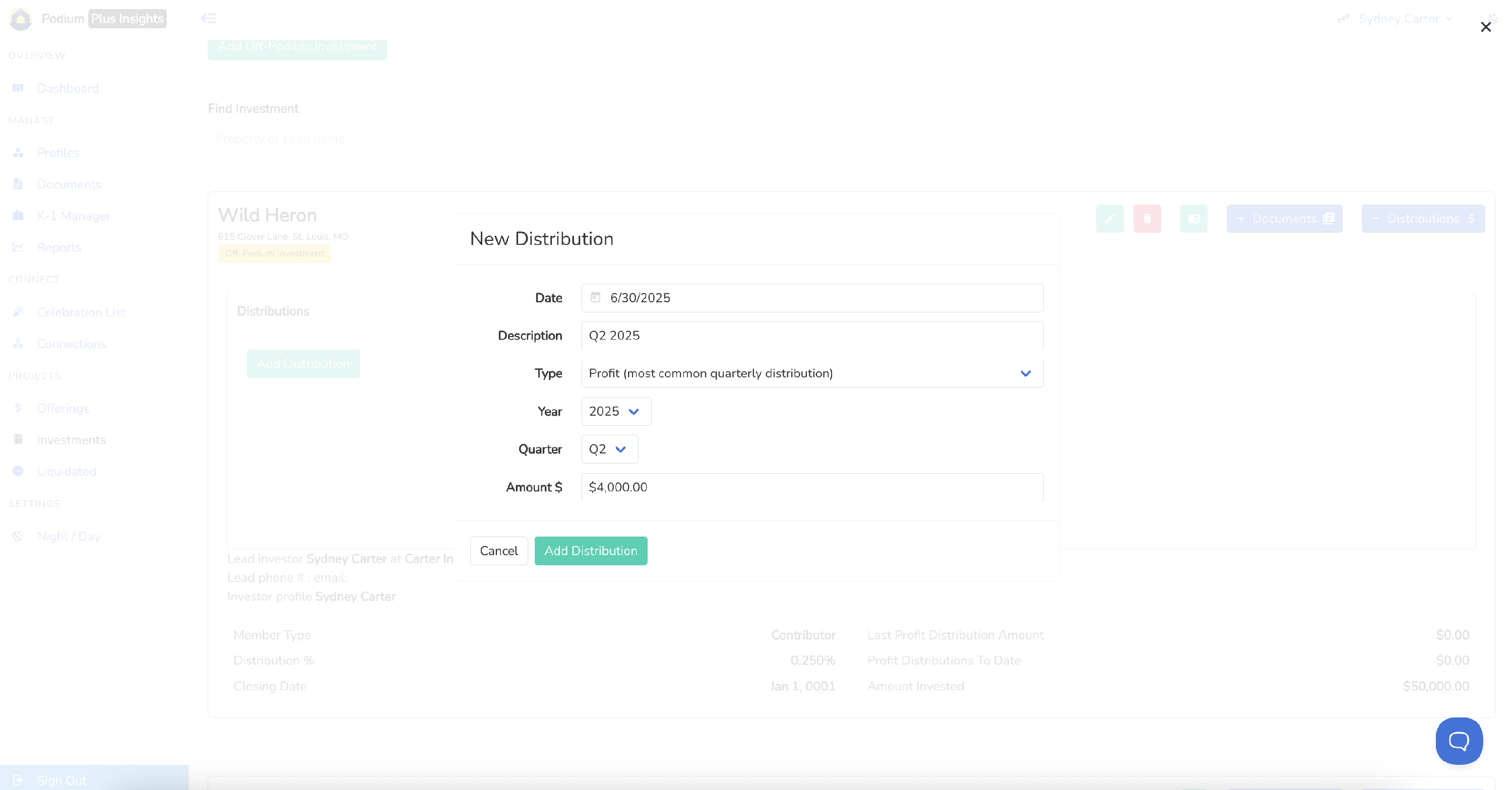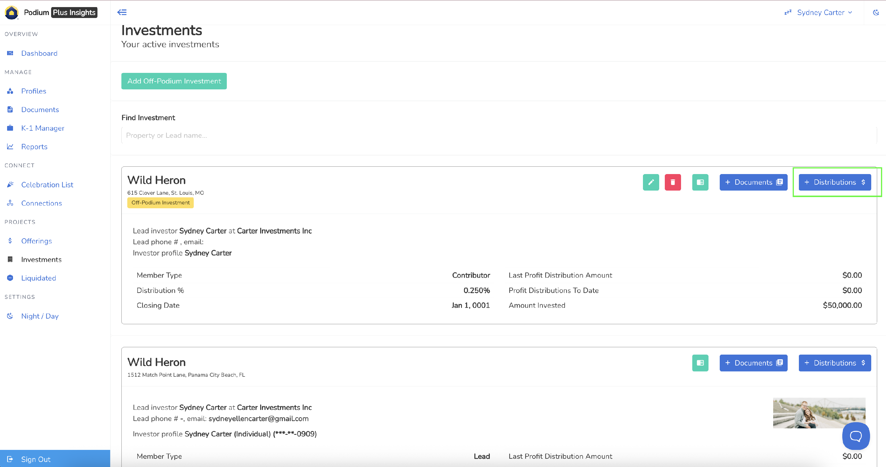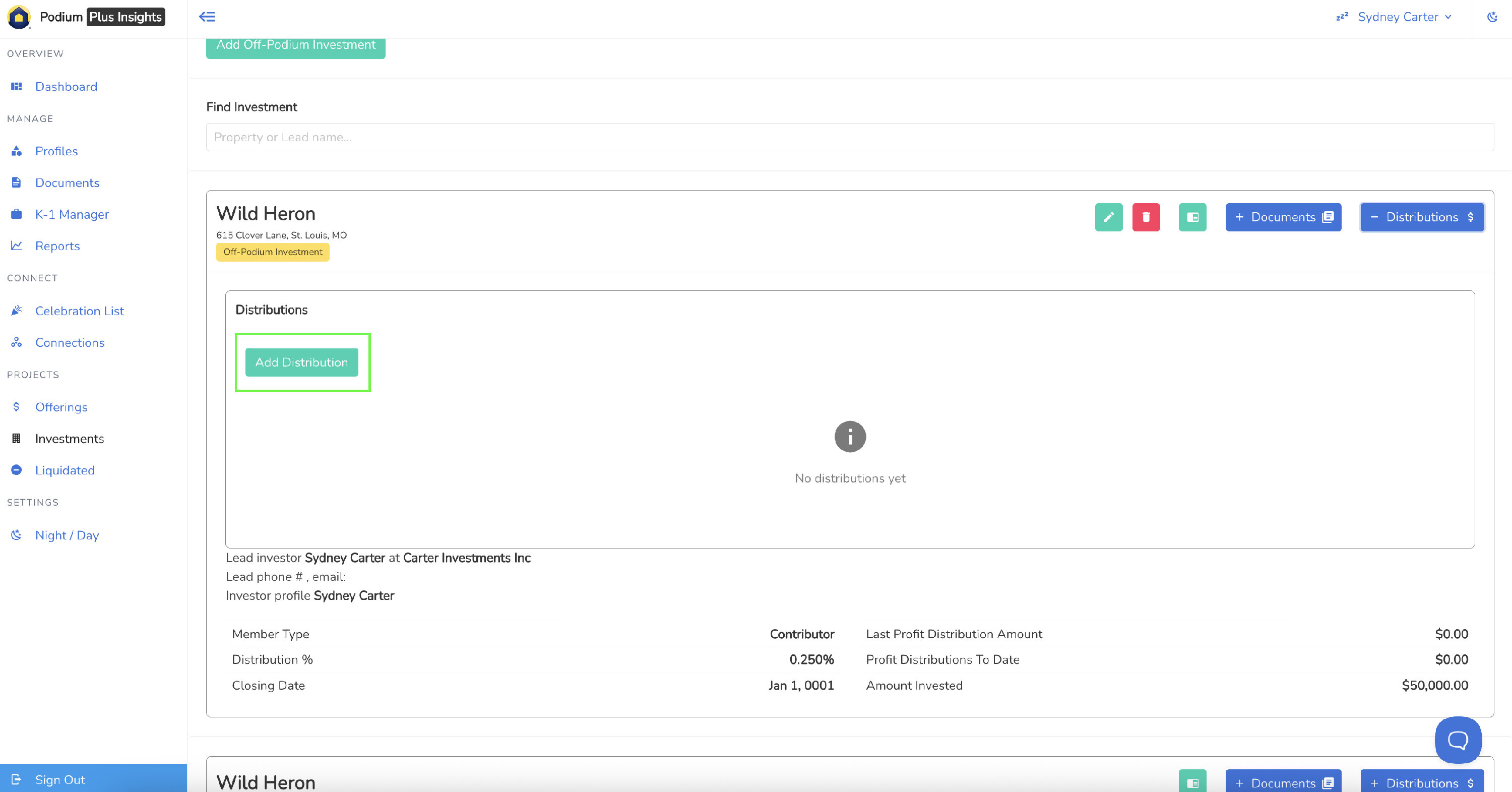 Click Save. It will appear on your investments page. Click on the Distributions button